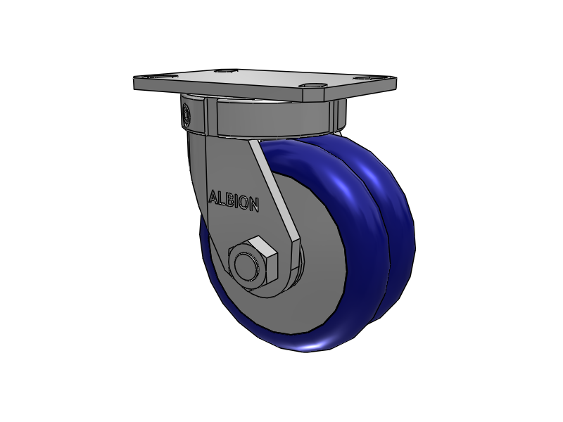Albion 310 Series are manufactured in Michigan, and are constructed from high quality heat-treated AISI 1045 laser-cut steel. A precision machined raceway combined with fully welded legs (inside and outside) and kingpinless design delivers superior strength in rugged applications. Kingpinless casters eliminate kingpin failure ─ the leading cause of caster failure.