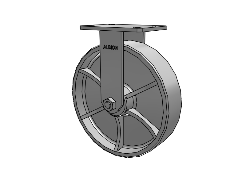 Albion 310 Series are manufactured in Michigan, and are constructed from high quality heat-treated AISI 1045 laser-cut steel. A precision machined raceway combined with fully welded legs (inside and outside) and kingpinless design delivers superior strength in rugged applications. Kingpinless casters eliminate kingpin failure ─ the leading cause of caster failure.