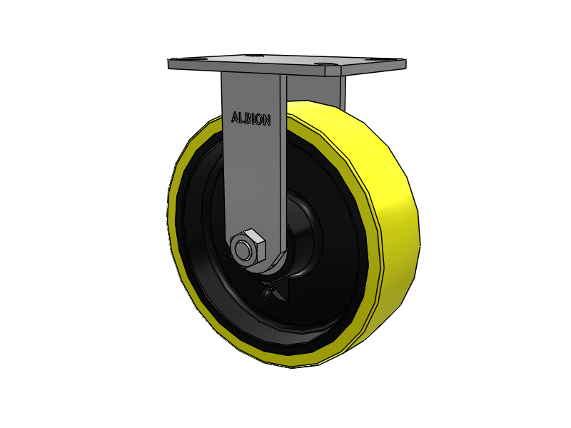 Albion 310 Series are manufactured in Michigan, and are constructed from high quality heat-treated AISI 1045 laser-cut steel. A precision machined raceway combined with fully welded legs (inside and outside) and kingpinless design delivers superior strength in rugged applications. Kingpinless casters eliminate kingpin failure ─ the leading cause of caster failure.