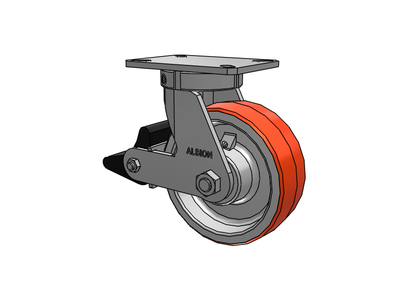 Albion 310 Series are manufactured in Michigan, and are constructed from high quality heat-treated AISI 1045 laser-cut steel. A precision machined raceway combined with fully welded legs (inside and outside) and kingpinless design delivers superior strength in rugged applications. Kingpinless casters eliminate kingpin failure ─ the leading cause of caster failure.