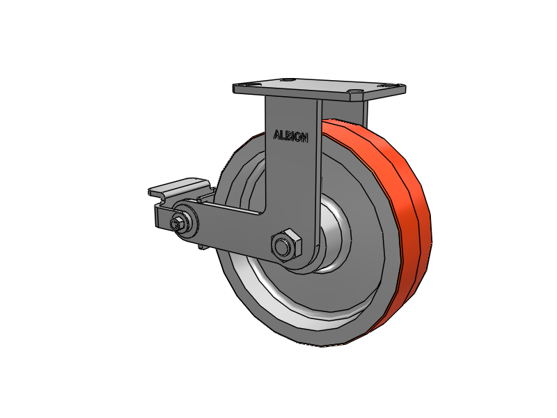 Albion 310 Series are manufactured in Michigan, and are constructed from high quality heat-treated AISI 1045 laser-cut steel. A precision machined raceway combined with fully welded legs (inside and outside) and kingpinless design delivers superior strength in rugged applications. Kingpinless casters eliminate kingpin failure ─ the leading cause of caster failure.