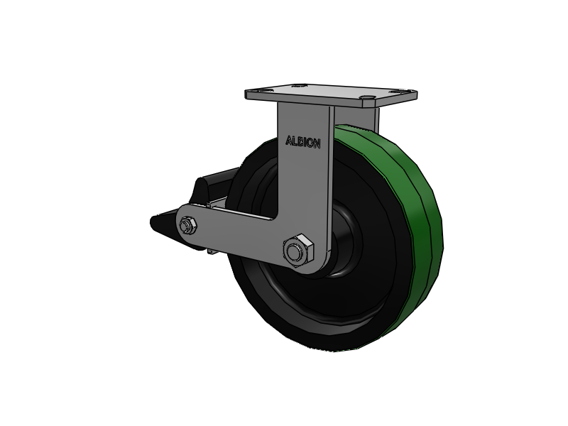 Albion 310 Series are manufactured in Michigan, and are constructed from high quality heat-treated AISI 1045 laser-cut steel. A precision machined raceway combined with fully welded legs (inside and outside) and kingpinless design delivers superior strength in rugged applications. Kingpinless casters eliminate kingpin failure ─ the leading cause of caster failure.