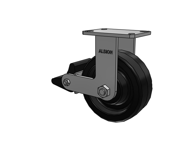 Albion 310 Series are manufactured in Michigan, and are constructed from high quality heat-treated AISI 1045 laser-cut steel. A precision machined raceway combined with fully welded legs (inside and outside) and kingpinless design delivers superior strength in rugged applications. Kingpinless casters eliminate kingpin failure ─ the leading cause of caster failure.