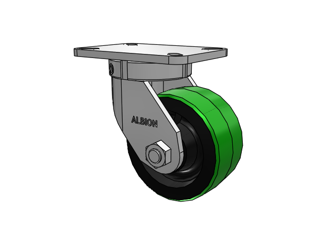 Albion 410 Series are manufactured in Michigan, and are constructed from high quality heat-treated AISI 1045 laser-cut steel. A precision machined raceway combined with fully welded legs (inside and outside) and kingpinless design delivers superior strength in rugged applications. Kingpinless casters eliminate kingpin failure – the leading cause of caster failure. 410 Series feature larger top plates and greater weight capacities than our 310 series.