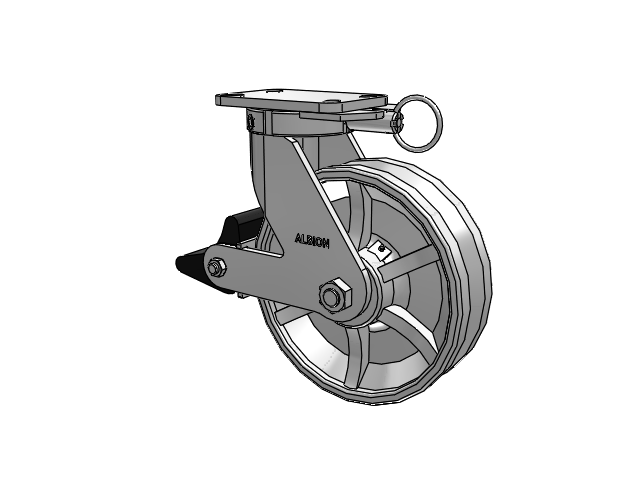 Albion 410 Series are manufactured in Michigan, and are constructed from high quality heat-treated AISI 1045 laser-cut steel. A precision machined raceway combined with fully welded legs (inside and outside) and kingpinless design delivers superior strength in rugged applications. Kingpinless casters eliminate kingpin failure – the leading cause of caster failure. 410 Series feature larger top plates and greater weight capacities than our 310 series.