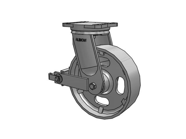 Albion 94BBL Super Duty Casters utilize a ball load swivel section. The swivel load raceway uses a 5â€-diameter ball load race with 1/2" steel balls hardened for greater resistance to wear and brinelling. The raceway is protected by a forged labyrinth skirt. The thrust raceway uses a 1-1/4†tapered roller bearing. Combined with AISI 1405 drop forged steel top plate and yoke base, 94BBL casters have a long life with large weight capacities, perfect for very rugged applications.