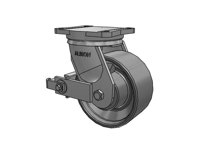 Albion 94TRL Super Duty Casters utilize a precision roller bearing load and thrust swivel section. The swivel load raceway uses a 5-inch outside diameter precision tapered roller bearing. The thrust raceway uses a 1-1/4-inch tapered roller bearing. Combined with AISI 1405 drop forged steel top plate and yoke base, 94TRL casters have a long life with large weight capacities, perfect for very rugged applications.