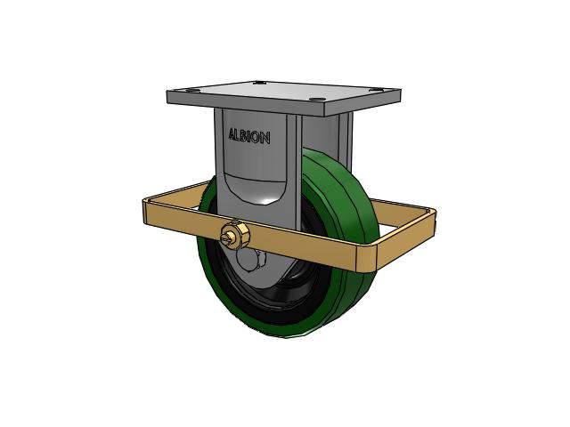Albion 94TRL Super Duty Casters utilize a precision roller bearing load and thrust swivel section. The swivel load raceway uses a 5-inch outside diameter precision tapered roller bearing. The thrust raceway uses a 1-1/4-inch tapered roller bearing. Combined with AISI 1405 drop forged steel top plate and yoke base, 94TRL casters have a long life with large weight capacities, perfect for very rugged applications.