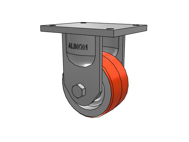 Albion 94TRL Super Duty Casters utilize a precision roller bearing load and thrust swivel section. The swivel load raceway uses a 5-inch outside diameter precision tapered roller bearing. The thrust raceway uses a 1-1/4-inch tapered roller bearing. Combined with AISI 1405 drop forged steel top plate and yoke base, 94TRL casters have a long life with large weight capacities, perfect for very rugged applications.
