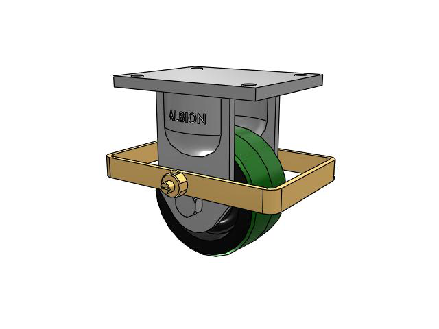 Albion 94TRL Super Duty Casters utilize a precision roller bearing load and thrust swivel section. The swivel load raceway uses a 5-inch outside diameter precision tapered roller bearing. The thrust raceway uses a 1-1/4-inch tapered roller bearing. Combined with AISI 1405 drop forged steel top plate and yoke base, 94TRL casters have a long life with large weight capacities, perfect for very rugged applications.