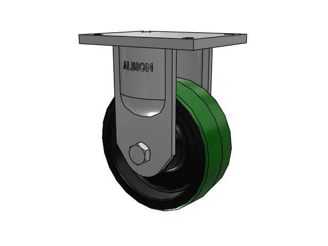 Albion 94TRL Super Duty Casters utilize a precision roller bearing load and thrust swivel section. The swivel load raceway uses a 5-inch outside diameter precision tapered roller bearing. The thrust raceway uses a 1-1/4-inch tapered roller bearing. Combined with AISI 1405 drop forged steel top plate and yoke base, 94TRL casters have a long life with large weight capacities, perfect for very rugged applications.
