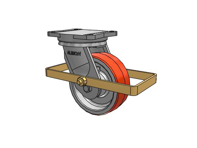 Albion 94TRL Super Duty Casters utilize a precision roller bearing load and thrust swivel section. The swivel load raceway uses a 5-inch outside diameter precision tapered roller bearing. The thrust raceway uses a 1-1/4-inch tapered roller bearing. Combined with AISI 1405 drop forged steel top plate and yoke base, 94TRL casters have a long life with large weight capacities, perfect for very rugged applications.