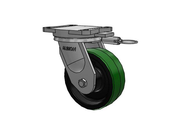 Albion 94TRL Super Duty Casters utilize a precision roller bearing load and thrust swivel section. The swivel load raceway uses a 5-inch outside diameter precision tapered roller bearing. The thrust raceway uses a 1-1/4-inch tapered roller bearing. Combined with AISI 1405 drop forged steel top plate and yoke base, 94TRL casters have a long life with large weight capacities, perfect for very rugged applications.