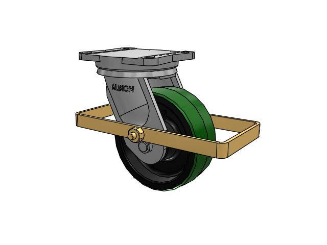 Albion 94TRL Super Duty Casters utilize a precision roller bearing load and thrust swivel section. The swivel load raceway uses a 5-inch outside diameter precision tapered roller bearing. The thrust raceway uses a 1-1/4-inch tapered roller bearing. Combined with AISI 1405 drop forged steel top plate and yoke base, 94TRL casters have a long life with large weight capacities, perfect for very rugged applications.