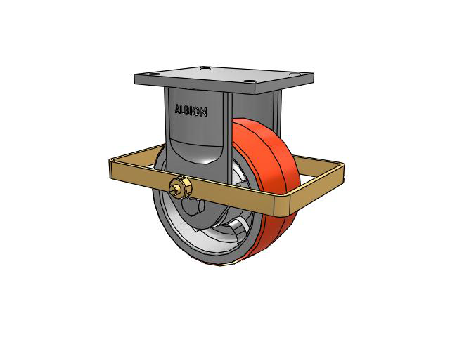 Albion 94TRL Super Duty Casters utilize a precision roller bearing load and thrust swivel section. The swivel load raceway uses a 5-inch outside diameter precision tapered roller bearing. The thrust raceway uses a 1-1/4-inch tapered roller bearing. Combined with AISI 1405 drop forged steel top plate and yoke base, 94TRL casters have a long life with large weight capacities, perfect for very rugged applications.