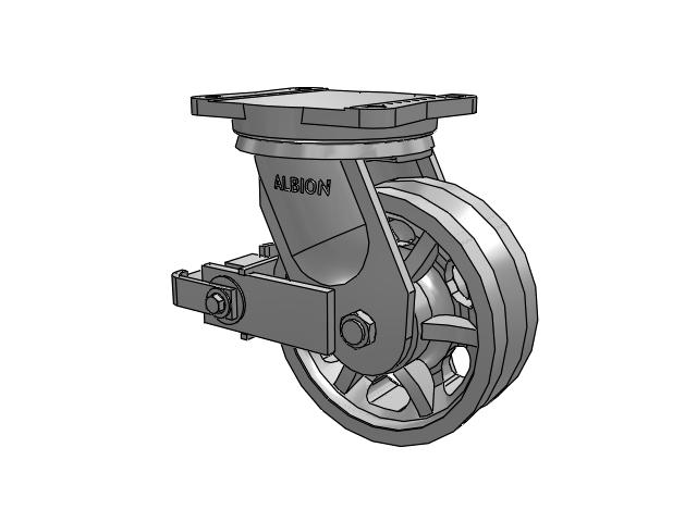 Albion 94TRL Super Duty Casters utilize a precision roller bearing load and thrust swivel section. The swivel load raceway uses a 5-inch outside diameter precision tapered roller bearing. The thrust raceway uses a 1-1/4-inch tapered roller bearing. Combined with AISI 1405 drop forged steel top plate and yoke base, 94TRL casters have a long life with large weight capacities, perfect for very rugged applications.