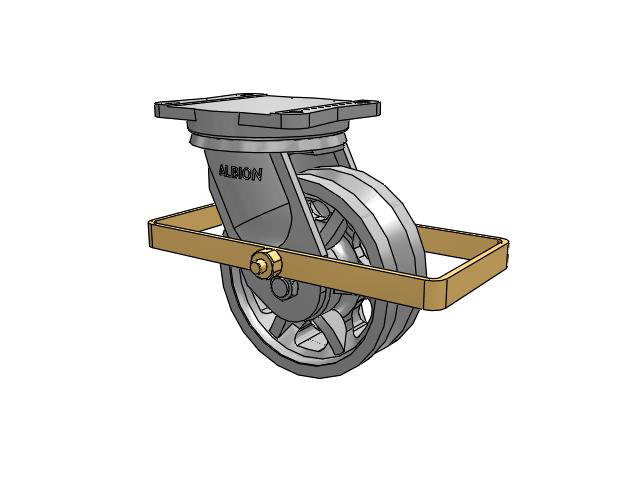 Albion 94TRL Super Duty Casters utilize a precision roller bearing load and thrust swivel section. The swivel load raceway uses a 5-inch outside diameter precision tapered roller bearing. The thrust raceway uses a 1-1/4-inch tapered roller bearing. Combined with AISI 1405 drop forged steel top plate and yoke base, 94TRL casters have a long life with large weight capacities, perfect for very rugged applications.