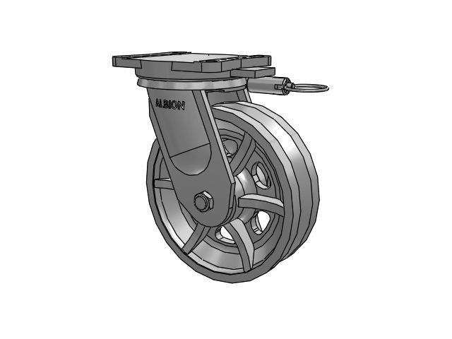 Albion 94TRL Super Duty Casters utilize a precision roller bearing load and thrust swivel section. The swivel load raceway uses a 5-inch outside diameter precision tapered roller bearing. The thrust raceway uses a 1-1/4-inch tapered roller bearing. Combined with AISI 1405 drop forged steel top plate and yoke base, 94TRL casters have a long life with large weight capacities, perfect for very rugged applications.