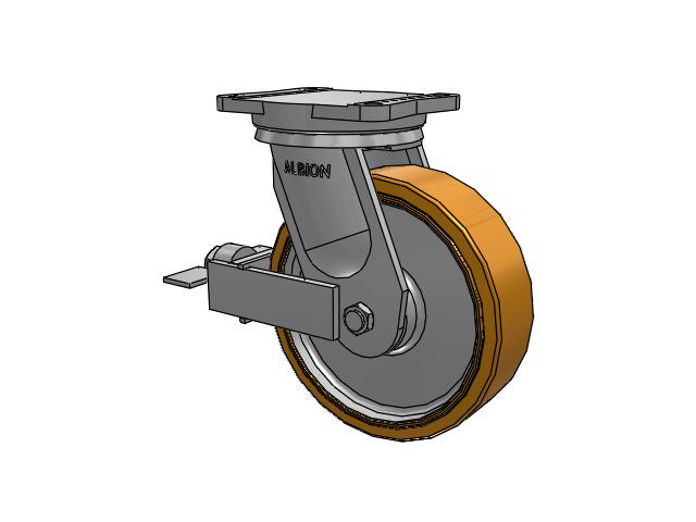 Albion 94TRL Super Duty Casters utilize a precision roller bearing load and thrust swivel section. The swivel load raceway uses a 5-inch outside diameter precision tapered roller bearing. The thrust raceway uses a 1-1/4-inch tapered roller bearing. Combined with AISI 1405 drop forged steel top plate and yoke base, 94TRL casters have a long life with large weight capacities, perfect for very rugged applications.