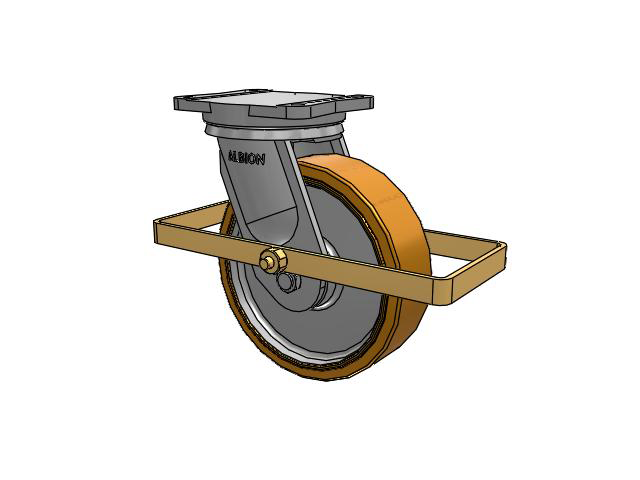 Albion 94TRL Super Duty Casters utilize a precision roller bearing load and thrust swivel section. The swivel load raceway uses a 5-inch outside diameter precision tapered roller bearing. The thrust raceway uses a 1-1/4-inch tapered roller bearing. Combined with AISI 1405 drop forged steel top plate and yoke base, 94TRL casters have a long life with large weight capacities, perfect for very rugged applications.