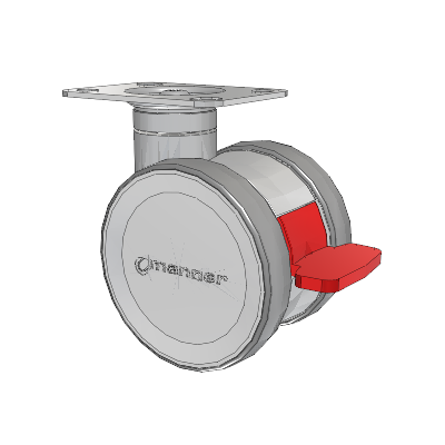 The high-quality Twist twin wheel caster is load-bearing and very sturdy yet easy to maneuver. Its special feature is the intuitive brake pedal, which clearly shows the status of the locking system and is easy to use. Two different heights make it easier to meet customer and device-specific requirements. The Twist Series is a modular design ready for any configuration of mounting from most hardware stores.