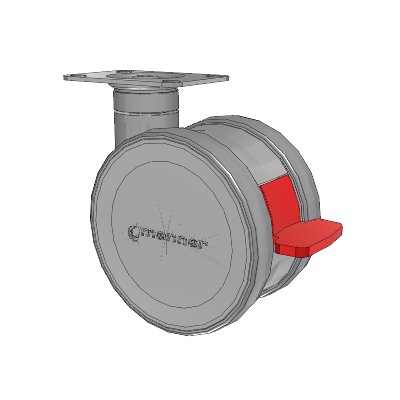 The high-quality Twist twin wheel caster is load-bearing and very sturdy yet easy to maneuver. Its special feature is the intuitive brake pedal, which clearly shows the status of the locking system and is easy to use. Two different heights make it easier to meet customer and device-specific requirements. The Twist Series is a modular design ready for any configuration of mounting from most hardware stores.