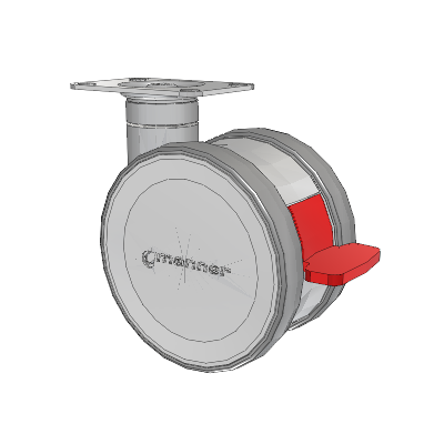 The high-quality Twist twin wheel caster is load-bearing and very sturdy yet easy to maneuver. Its special feature is the intuitive brake pedal, which clearly shows the status of the locking system and is easy to use. Two different heights make it easier to meet customer and device-specific requirements. The Twist Series is a modular design ready for any configuration of mounting from most hardware stores.