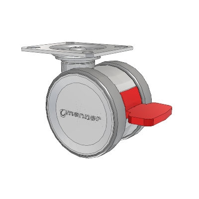 The high-quality Twist twin wheel caster is load-bearing and very sturdy yet easy to maneuver. Its special feature is the intuitive brake pedal, which clearly shows the status of the locking system and is easy to use. Two different heights make it easier to meet customer and device-specific requirements. The Twist Series is a modular design ready for any configuration of mounting from most hardware stores.