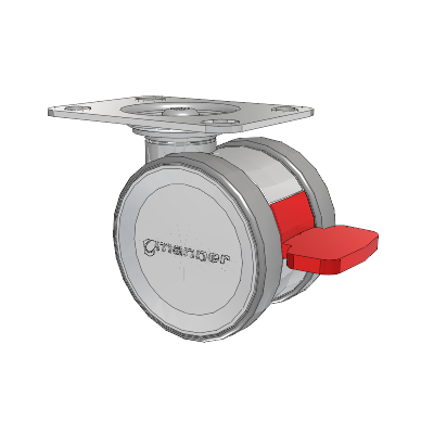 The high-quality Twist twin wheel caster is load-bearing and very sturdy yet easy to maneuver. Its special feature is the intuitive brake pedal, which clearly shows the status of the locking system and is easy to use. Two different heights make it easier to meet customer and device-specific requirements. The Twist Series is a modular design ready for any configuration of mounting from most hardware stores.