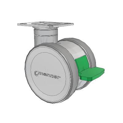 The high-quality Twist twin wheel caster is load-bearing and very sturdy yet easy to maneuver. Its special feature is the intuitive brake pedal, which clearly shows the status of the locking system and is easy to use. Two different heights make it easier to meet customer and device-specific requirements. The Twist Series is a modular design ready for any configuration of mounting from most hardware stores.