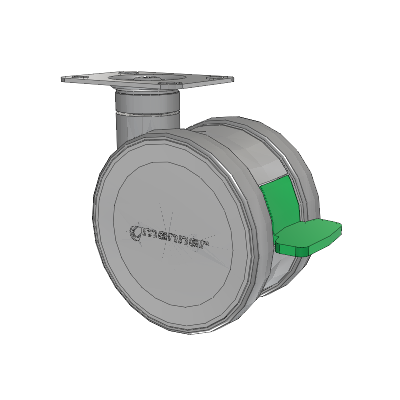 The high-quality Twist twin wheel caster is load-bearing and very sturdy yet easy to maneuver. Its special feature is the intuitive brake pedal, which clearly shows the status of the locking system and is easy to use. Two different heights make it easier to meet customer and device-specific requirements. The Twist Series is a modular design ready for any configuration of mounting from most hardware stores.