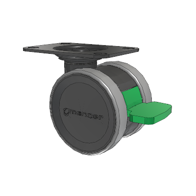 The high-quality Twist twin wheel caster is load-bearing and very sturdy yet easy to maneuver. Its special feature is the intuitive brake pedal, which clearly shows the status of the locking system and is easy to use. Two different heights make it easier to meet customer and device-specific requirements. The Twist Series is a modular design ready for any configuration of mounting from most hardware stores.