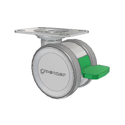 The high-quality Twist twin wheel caster is load-bearing and very sturdy yet easy to maneuver. Its special feature is the intuitive brake pedal, which clearly shows the status of the locking system and is easy to use. Two different heights make it easier to meet customer and device-specific requirements. The Twist Series is a modular design ready for any configuration of mounting from most hardware stores.