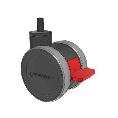 The high-quality Twist twin wheel caster is load-bearing and very sturdy yet easy to maneuver. Its special feature is the intuitive brake pedal, which clearly shows the status of the locking system and is easy to use. Two different heights make it easier to meet customer and device-specific requirements. The Twist Series is a modular design ready for any configuration of mounting from most hardware stores.
