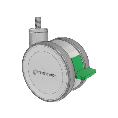 The high-quality Twist twin wheel caster is load-bearing and very sturdy yet easy to maneuver. Its special feature is the intuitive brake pedal, which clearly shows the status of the locking system and is easy to use. Two different heights make it easier to meet customer and device-specific requirements. The Twist Series is a modular design ready for any configuration of mounting from most hardware stores.