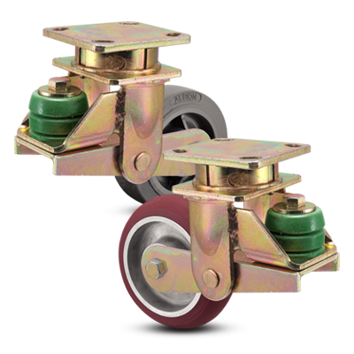 Albion 141 Series casters feature a polyurethane spring, and are designed with features tailored to meet the varied needs of the aviation ground support equipment and automotive industries. 141 Series casters are equally at home in other extremely abusive and rugged applications. The durable and corrosion-resistant polyurethane spring helps protect cargo from unwanted vibration and damaging shocks. The solid spring material has no spring coil where debris can jam the spring action.