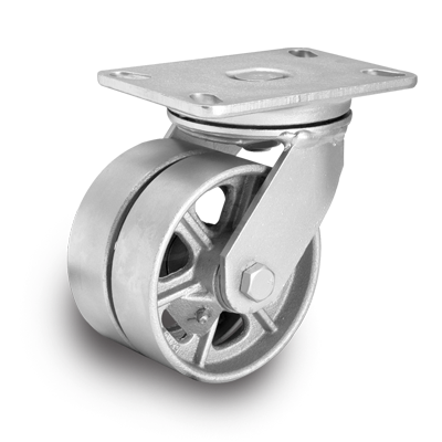 Albion 272 casters are dual wheel versions of our 72 series. This dual wheel version was designed for greater capacity and better distribution of floor load with the lowest possible overall height. Each caster has differential action when changing direction, greatly reducing the scrubbing effect which results from usage of wide-faced, small diameter wheels. 272 rigs are manufactured of hot-forged steel, designed for extended life in rugged applications.