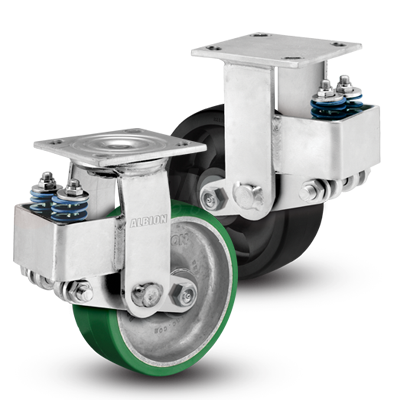 Spring-loaded casters are designed to protect the transported load. Albion 40 series protects from damaging shocks or unwanted vibration and movement. Noise levels are reduced through the dampening effects of the springs.
