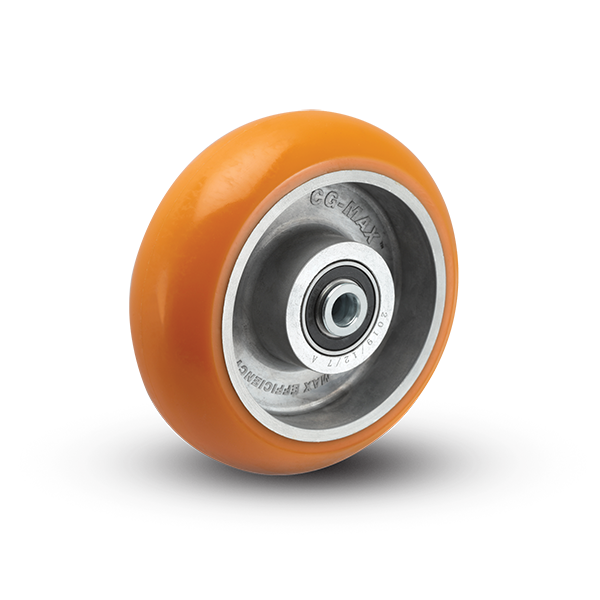 The CG-MAX wheel was designed and formulated to outperform, outlast, and take customer efficiency to the MAX. With best-in-class ergonomics and durability, this versatile polyurethane on aluminum wheel will drive new value into your operations. From improved material flow to safer workplaces, we encourage you to experience the real impact CG-MAX casters will have on your business today. This reactive polyurethane wheel tread is chemically and mechanically molded onto a lightweight aluminum wheel core. Count on this wheel to glide quietly across even debris covered floors, while maintaining the durability to carry heavy loads (up to 1500 lbs. each).