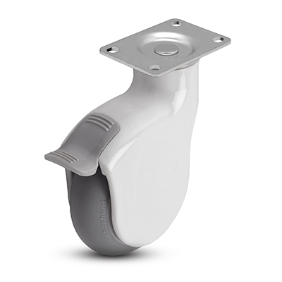 With its stylish design and resistance to corrosion, Genesis has become a popular choice among medical equipment, furniture, and store fixture manufacturers. With a strong glass-filled nylon body, durable MonoTech wheel, and optional easy to activate tread brake- these casters will give your medical equipment or utility cart the stylish look and durability you have been searching for. The Genesis Series is available in a variety of  colors, and fastening options.
