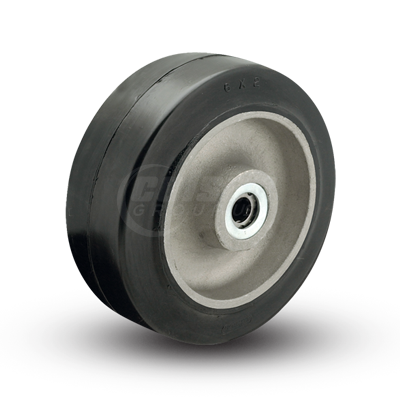Mold-on cushion rubber treads are vulcanized onto a die cast aluminum core. The soft rubber tread affords a cushion effect to the load and excellent floor protection. These wheels are highly shock-absorbing and provide quiet operations, all while dampening vibrations.