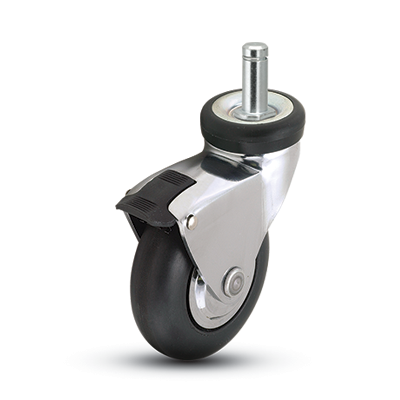 Each NeoTeq series caster uses a non-marking neoprene wheel to provide easy turning and maneuverability. The dual ball swivel raceway adds strength, while the precision ball bearings in the wheel increases roll-ability. Bright chrome provides an attractive, chemical-resistant finish. Matching chrome thread guards are standard on all models to reduce debris entanglement. A durable, coated metal dust shield helps prevent dirt and dust build-up in the swivel raceway.