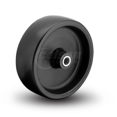 This wheel is an injection molded blend of thermoplastic polymers which resist absorption and are resistant to most chemicals and solvents. Capacity ratings are comparable to hard rubber wheels with the added advantage of being lighter in weight and having greater impact resistance.