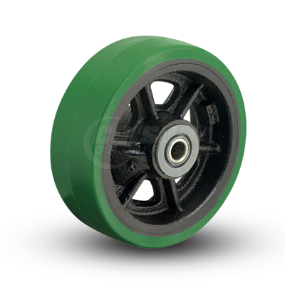 to a cast iron core. High capacity polyurethane protects floors, is non-marking and delivers quieter operation than standard metal wheels.