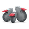 The timeless and clinical appearance of the Tango caster looks hygienic and high quality. The Tango Series comes in 3 standard colors (Light Grey - RAL 7035, Dark Grey - RAL 7042 and Black RAL 9005) with red pedal.