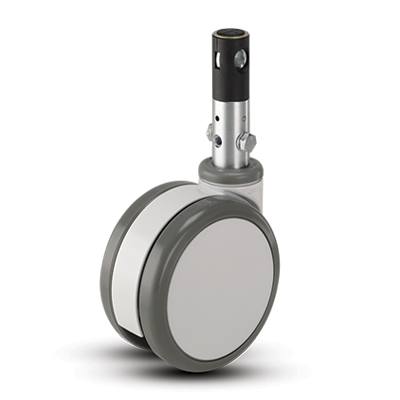 Twin Tech casters are ideal for hospital beds and ultrasonic equipment. The twin wheel design provides improved turning capabilities. Precision bearings in wheels offer optimal rolling motion. Caster stems meet industry standards to integrate with existing central locking brake systems. The central locking mechanism is factory-set and maintenance-free for the life of the caster. Med-Ultra casters meet ISO Standard 22882: 2004 Casters & Wheels – Requirements for Casters for Hospital Beds.