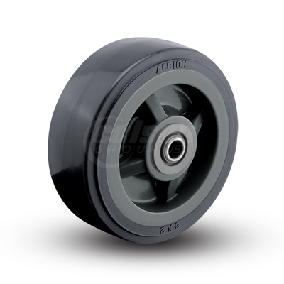 This wheel has excellent properties where wash-down of material handling equipment is required. Tread is mechanically locked to