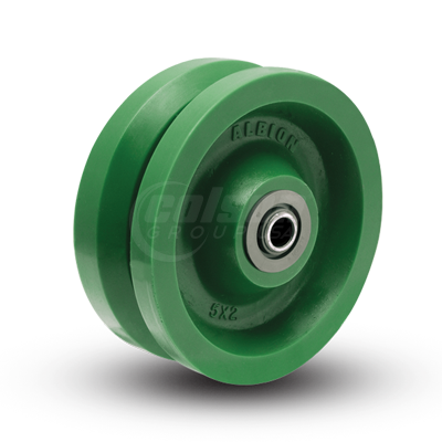 Albion XV wheels are polyurethane wheels with v-grooves for use with floor tracking systems. The wheels have a relief groove at the base of the V, which helps equalize the load to each face of angled track when in operation. Wheel face and bore are machined for concentricity to proper tracking. These wheels can be used not only on a track, but any flat surfaces. When using a track, please be aware that track alignment is critical for proper operation.